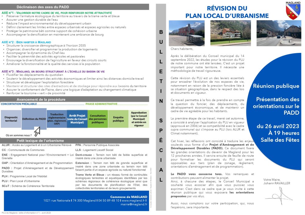 Un PLU, ce n’est pas seulement une carte qui définit les droits à construire, c’est surtout un outil qui permet d’assurer un développement serein et cohérent pour que Magland reste un village où il fait bon vivre.