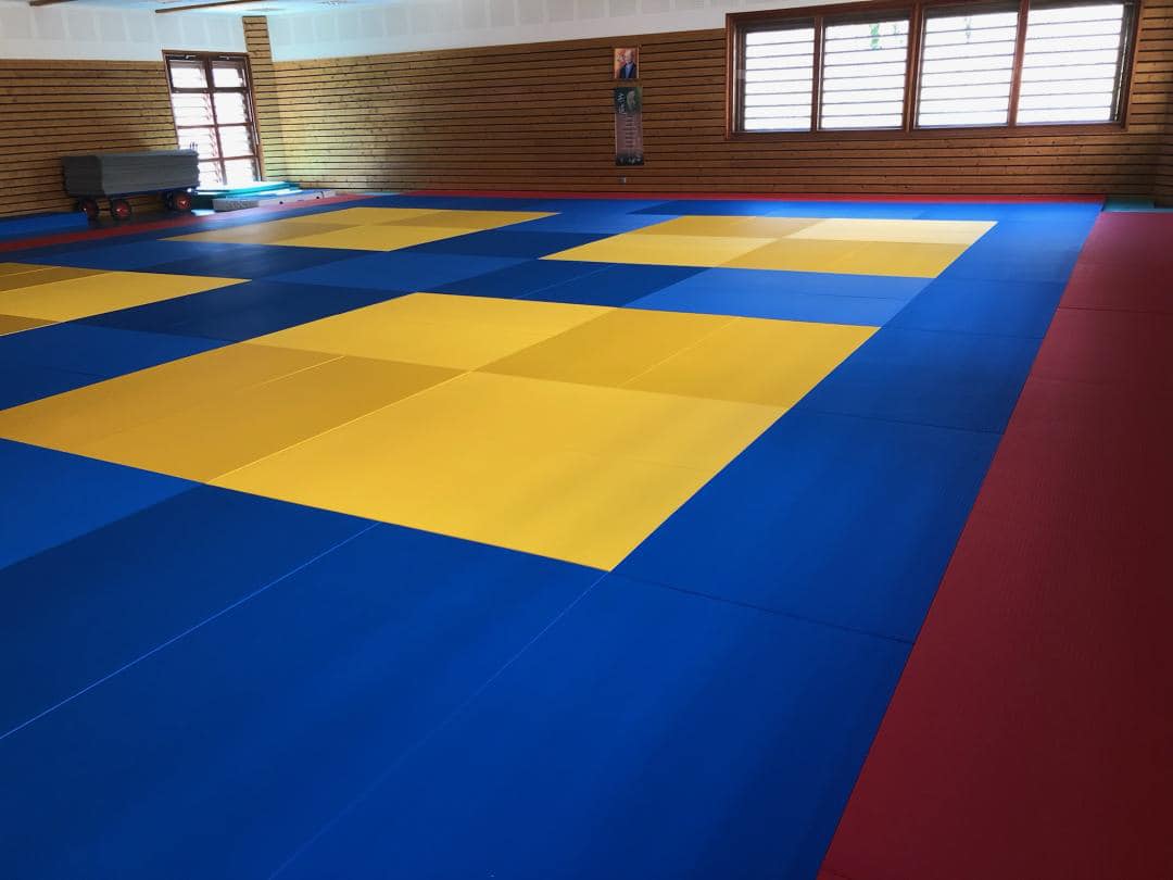 Afin de répondre aux nouvelles normes en vigueur, remplacement des anciens tapis du dojo en coton par des nouveaux tapis en vinyle. Ces tapis sont plus faciles à entretenir et apporteront un meilleur confort d’utilisation au Judo Club, au Karate, au yoga et aux écoles de Magland. Avant :